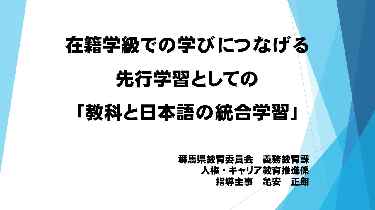 この動画は、日本語指導を必要とする外国人児童生徒等に向けた、在籍学級での学びにつなげる先行学習としての「教科と日本語の統合学習」の取組について紹介しています。●問い合わせ先:群馬県教育委員会義務教育課...